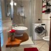 Aria condizionata, macchina del caffè Dolcegusto, bollitore, forno, forno a microonde, smart tv e lavatrice completano le dotazioni dell’appartamento.