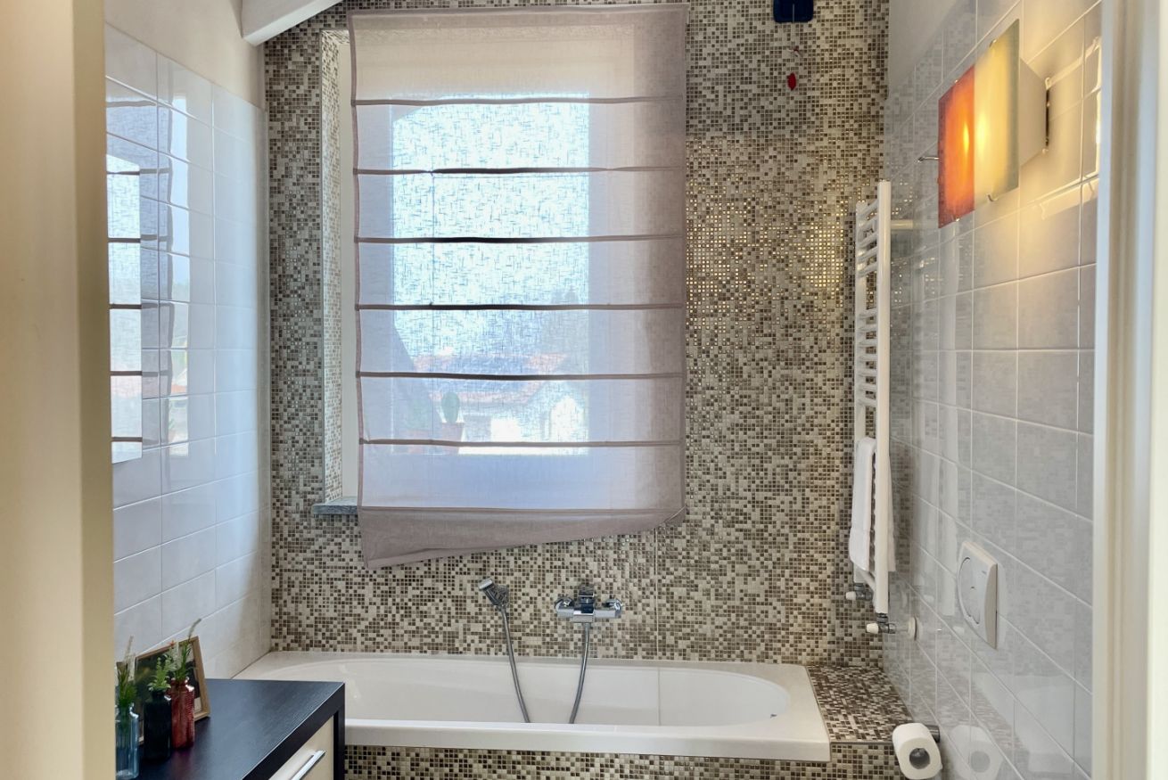 Un secondo bagno con vasca completa il piano, ideale per famiglie o gruppi.