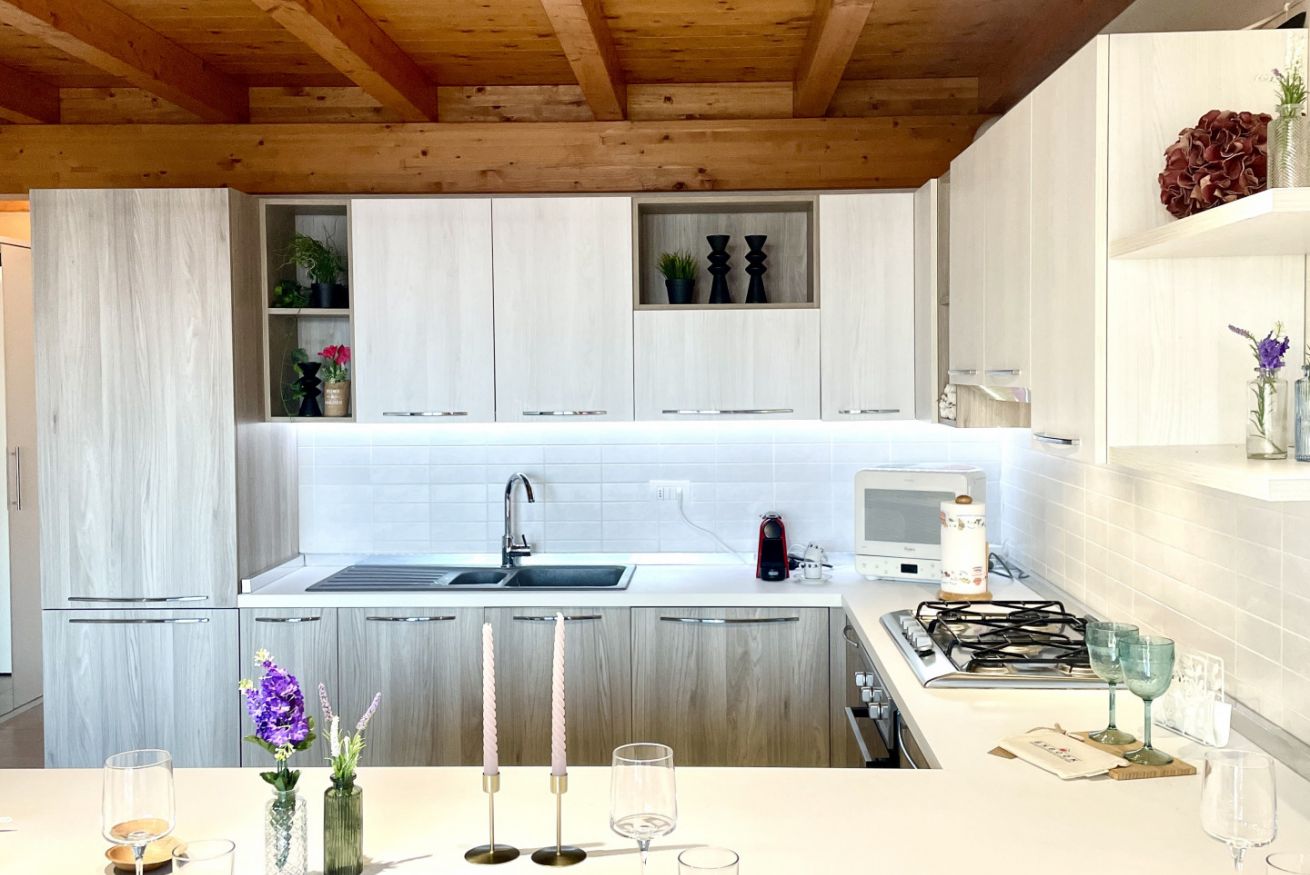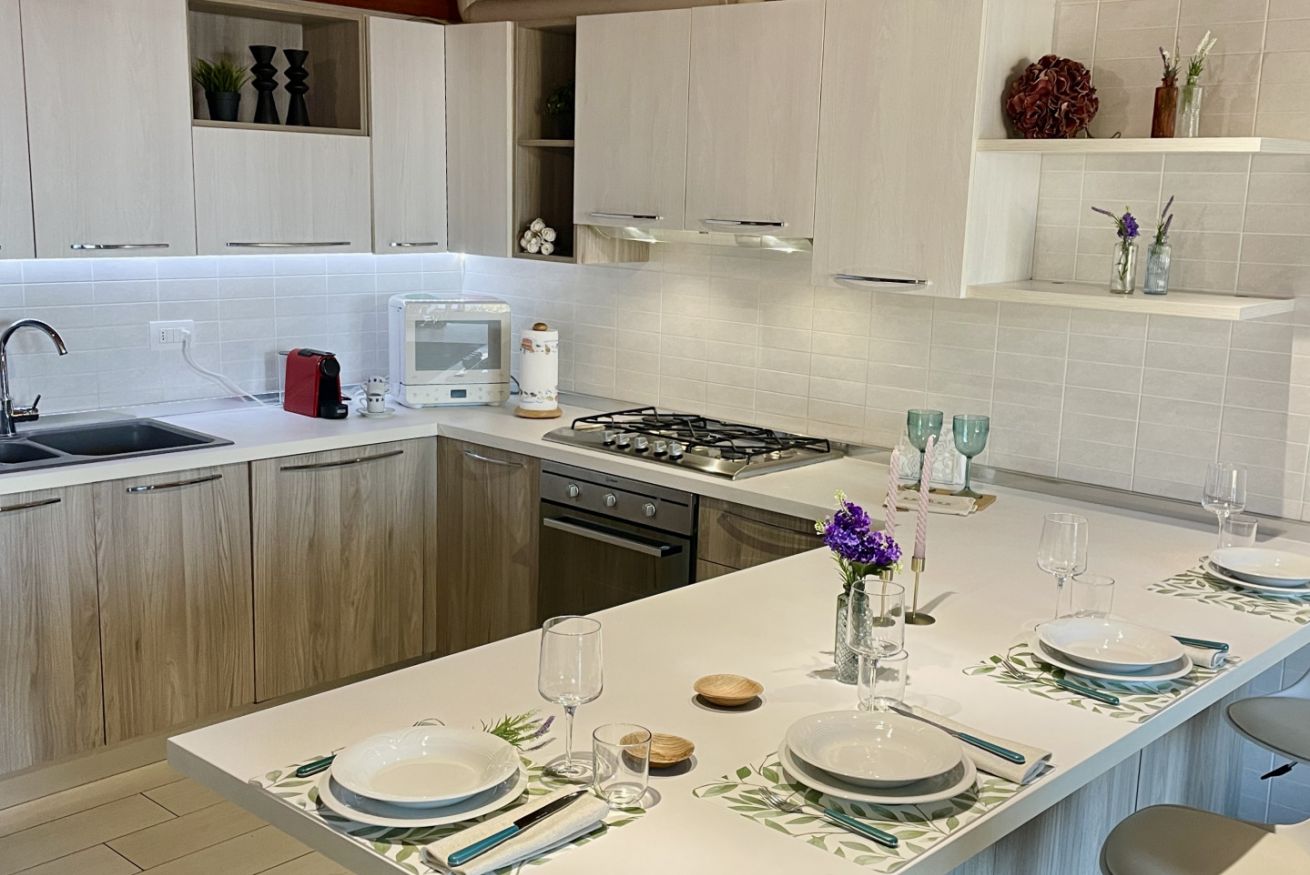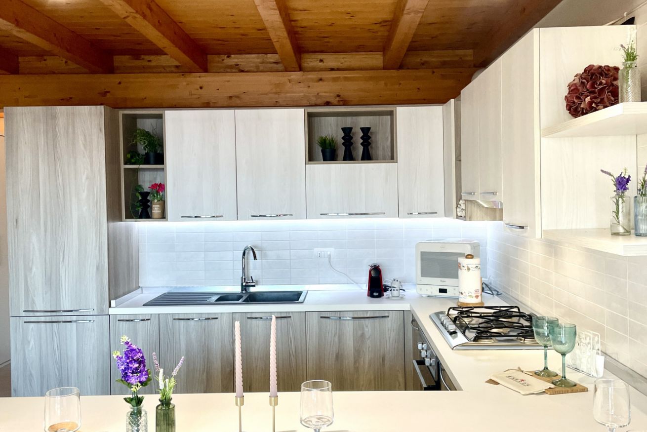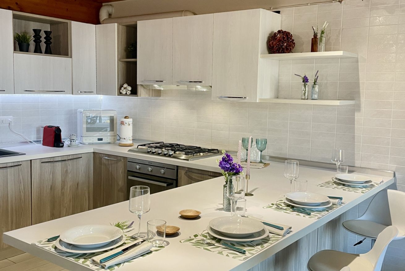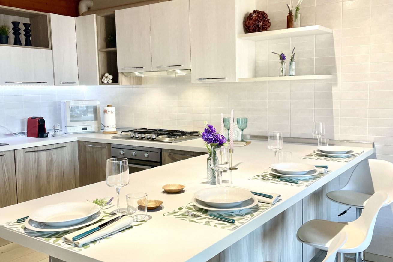 • Una cucina moderna e attrezzata con forno, microonde, lavastoviglie e macchina del caffè, perfetta per chi ama cucinare anche in vacanza;