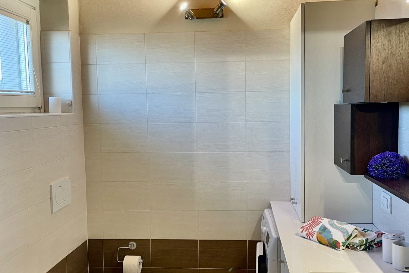 • Due bagni, di cui uno completo con doccia e lavatrice;