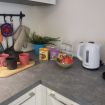 La cucina è dotata di tutto il necessario per cucinare: piano cottura a induzione, frigorifero con congelatore, lavastoviglie, macchina del caffè, bollitore e un set completo di pentole, padelle e stoviglie.