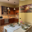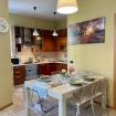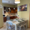 All'ingresso dell'appartamento, sarete accolti da un ampio e luminoso salotto arredato con cura, completo di smart TV, comodo divano e tavolo da pranzo. La cucina, completamente attrezzata con forno, forno a microonde, macchina per il caffè e lavastoviglie, assicura un comfort totale.