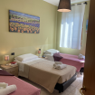 La zona notte si compone di due spaziose camere da letto, una con tre letti singoli e l'altra con due letti singoli o un letto matrimoniale. Ci sono due ampi bagni con doccia e finestra, che garantiscono comodità e privacy per tutti gli ospiti.
