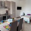 Ha due letti singoli che all'occorenza diventano un comodo letto matrimoniale, un divano letto singolo, l'angolo cottura attrezzato con fornelli, frigorifero e freezer, forno, bollitore e tutto l'occorrente per cucinare e il bagno privato con doccia.